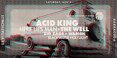 ACID KING • HERE LIES MAN • THE WELL • WARISH • ZIG ZAGS • BLACKWATER HOLYLIGHTpresented with RIDINGEASY RECORDSDOORS at 2:00pmSHOW BEGINS at 3:00pmSHOW ENDS by 7:00pmTwo stage show!
