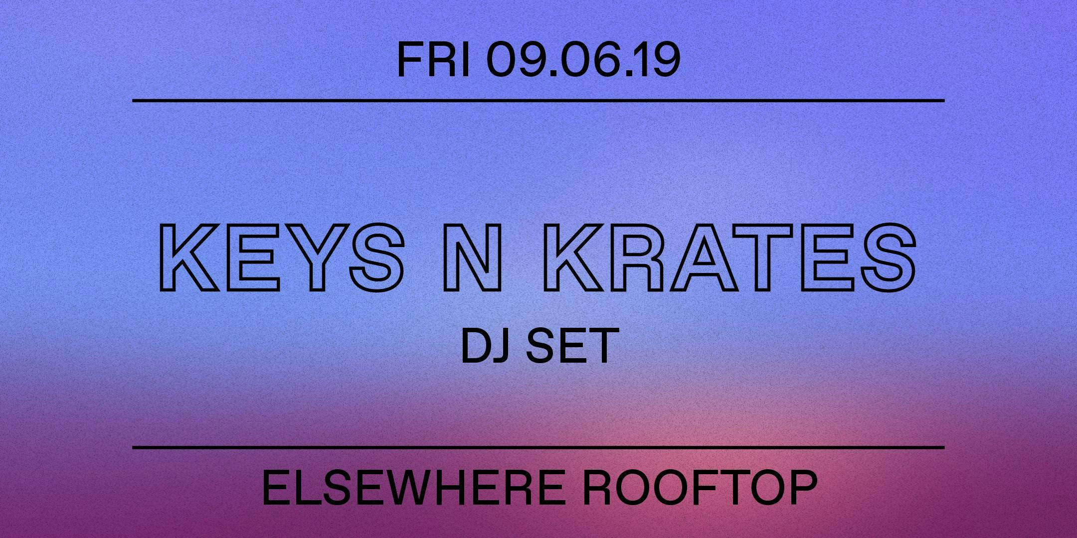 ☼ Performances└ Keys N Krates (DJ Set)└└ Jubilee└└└ Chong the Nomad (DJ Set) Doors: 5PMPerformances: 5PM - 10PMRoof deck closes at: 4AMDOOR: $25---- ☼ About Elsewhere RooftopElsewhere Rooftop is a seasonal large outdoor bar and events space, offering a signature frozen drink menu, shows & parties, sunset DJ sessions, food pop-ups, film screenings, art happenings, and much more all summer. Full calendar at https://bit.ly/2UMjRb3 ☼ Hours*The Rooftop usually opens at 6PM Monday through Friday and 2PM Saturday & Sunday, but is only open when the following events are happening: https://bit.ly/2UMjRb3 — please do make sure to check the rooftop calendar before stopping by! ☼ Rain or Shine PolicyAll shows and events on the Rooftop are rain or shine! If the weather prevents us from carrying on, we will update customers via our website, Facebook, Instagram, Twitter, Eventbrite and Resident Advisor.  ☼ Safer Space PolicyELSEWHERE MAINTAINS A STRICT ZERO TOLERANCE POLICY FOR HARASSMENTElsewhere is intended to be a safe space to enjoy music, art, expression, and free play. Our staff are trained to remove individuals engaging in any form of sexual harassment, acts of aggression (including leering), racism, misogyny, transphobia, homophobia, religious bigotry, or hatred and discrimination of any kind. If you see or experience any unwanted attention, contact, bullying, harassment, or behavior of any kind that makes you uncomfortable, please speak out and notify our staff immediately.Please read our full policy at: https://bit.ly/2VxByad