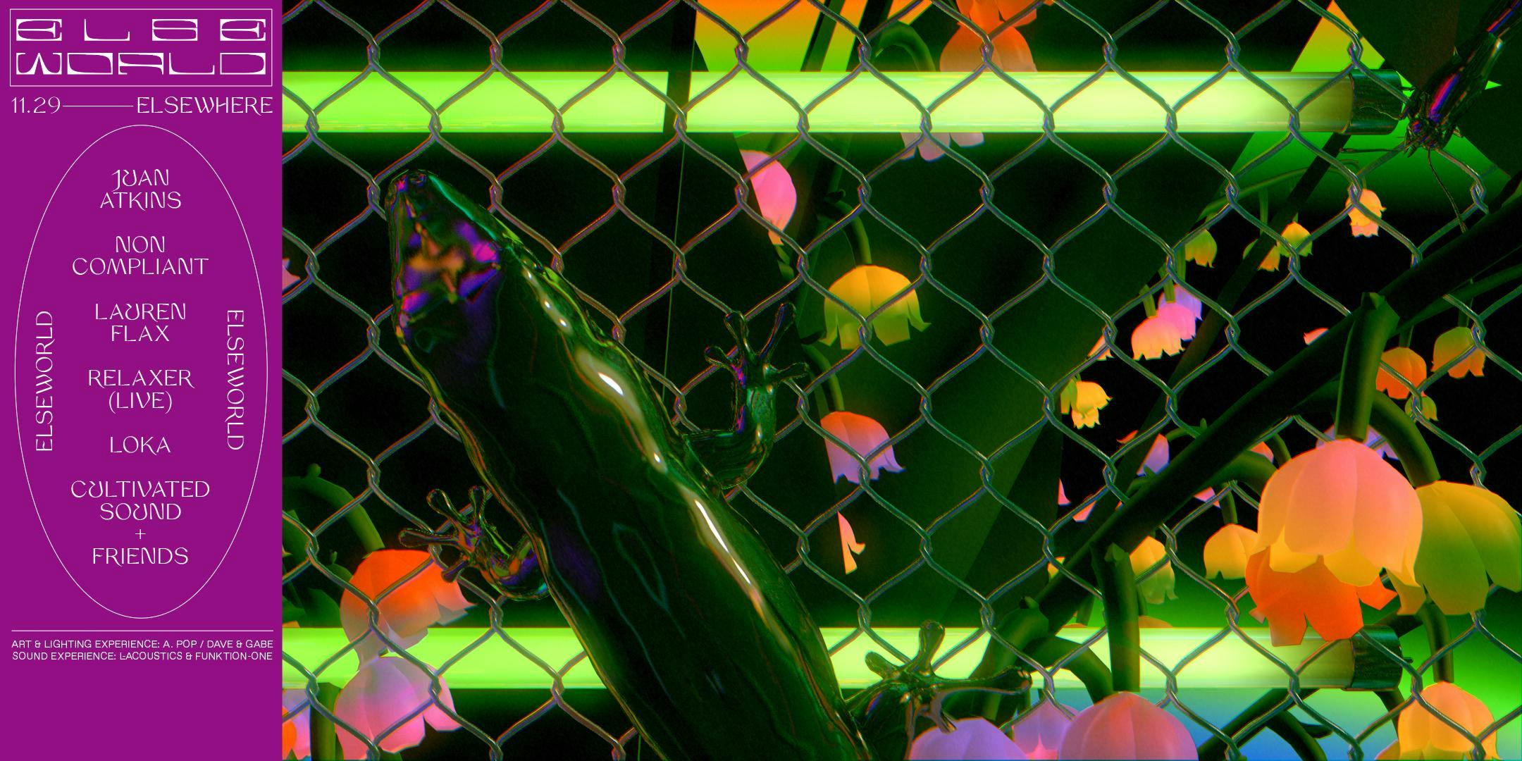 Elsewhere Presents...E L S E W O R L Dstep into the brave new world of elsewhere's first signature monthly party series: ELSEWORLD, a vast psychedelic nightlife experience for the entire elsewhere community, celebrating progressive visual art & design and the best in underground music. we're fusing life-forces with immersive designers A. POP and DAVE & GABE for a special journey into new elseworlds, with three levels of dance floors to explore, an open-air club with a skyline at the top, and plenty of nooks & crannies to meet other travelers.everyone is welcome in elseworld. come as you are. explore. get lost in the rhythm.join us for lift off sept. 6th with the ladies of LCD soundsystem to ring in the dawn of a new odyssey for elsewhere≋≋≋≋≋≋ LINEUP ≋≋≋≋≋≋HALL└ Juan Atkins└ └ Noncompliant└└└ Relaxer (Live)└└└ Lauren FlaxLOFTCultivated Sound and Friends└ Cultivated Sound Residents (Maŕa & Chamberlain Zhang)└└ 夜露四苦4649 (Haruka Salt & Yuri Mizokami)└└ LOKAᚼᚼ ᴀʀᴛ & ʟɪɢʜᴛɪɴɢ ᴇxᴘᴇʀɪᴇɴᴄᴇ ʙʏ...A. POP - bit.ly/apopdesignDAVE & GABE - http://daveandgabe.careᛄᛄ sᴏᴜɴᴅ ᴇxᴘᴇʀɪᴇɴᴄᴇ ʙʏ...L'ACOUSTICSFUNKTION ONEᚸᚸ ᴅɪɢɪᴛᴀʟ ɪʟʟᴜsᴛʀᴀᴛɪᴏɴ ʙʏ...NICOLE GINELLI - @nicole.ginelli ᴅᴇsɪɢɴ ᴅɪʀᴇᴄᴛɪᴏɴ ʙʏ...EYEBODEGA - @eyebodega GROUP DISCOUNT ≋≋≋≋≋≋everyone is welcome in elseworld. to celebrate the launch of our new party series, and to make the party more affordable for all, we're offering discounted group tickets for just $10/ticket for crews of 3+.≋≋≋≋≋≋ SAFER SPACE POLICY ≋≋≋≋≋≋ELSEWHERE MAINTAINS A STRICT ZERO TOLERANCE POLICY FOR HARASSMENTElsewhere is intended to be a safe space to enjoy music, art, expression, and free play. Our staff are trained to remove individuals engaging in any form of sexual harassment, acts of aggression (including leering), racism, misogyny, transphobia, homophobia, religious bigotry, or hatred and discrimination of any kind.If you see or experience any unwanted attention, contact, bullying, harassment, or behavior of any kind that makes you uncomfortable, please speak out and notify our staff immediately.Please read our full policy at: https://bit.ly/2VxByad≋¤≋¤≋sign up for the listserv to keep up with our antics + show announcements:sign up: http://bit.ly/2vGB0BSsubscribe to the cal: http://bit.ly/elsewhereeventsElsewhere is intended to be a safe space to enjoy music, art, expression, and free play. Elsewhere reserves the right to deny, remove and/or ban any customer deemed to be disrespecting our zero-tolerance harassment policy. Please read our full policy at: https://bit.ly/2VxByad All ticket sales are final, and Elsewhere does not offer refunds for any reason except event cancellation or reschedule. Opening performers, door times, and set times are subject to change without notice. All ticket holders must present a valid US government-issued ID or passport upon entering, and Elsewhere reserves the right to refuse entry without refund to anyone who does not have a valid ID or meet the event's age requirement. Please note that Elsewhere does not accept foreign IDs of any kind other than passports. Elsewhere does not guarantee the validity or use for admittance of tickets purchased via 3rd party resellers of any kind.