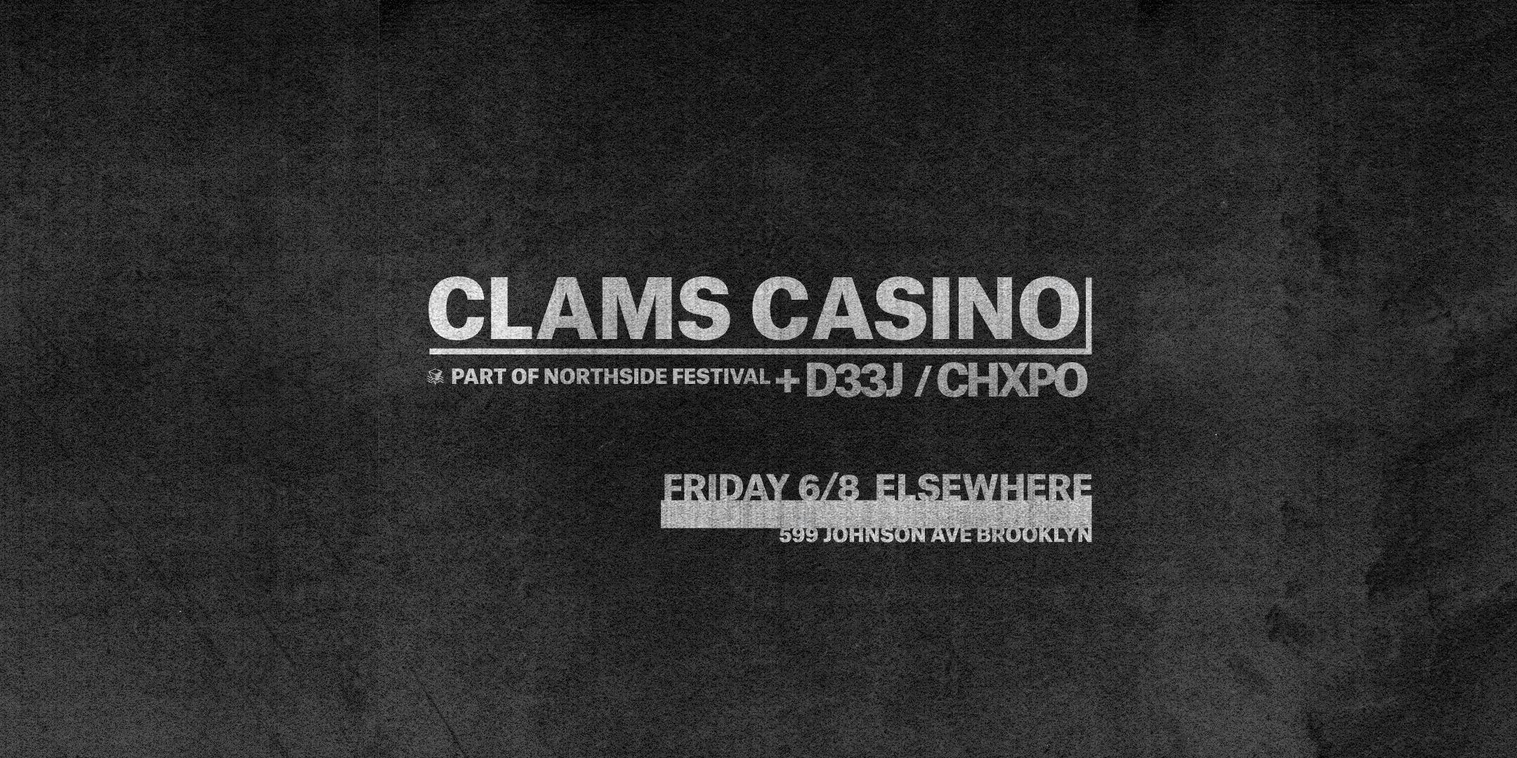 heads up y'all: this summer season, the Elsewhere Rooftop will be open all night on weekends space-permitting, so grab a frozen drink with a view of the skyline when you need a breather! if you've never been to our space, there is lots else to explore too! our parties are multi-room celebrations, featuring a very large cavernous warehouse hall and a cozy dance floor in the side room, plus a small hideaway lounge tucked into the 2nd floor. make sure to wander!--11PM - 4AMHALL└ Clams Casino└ └ D33J└└└ CHXPO