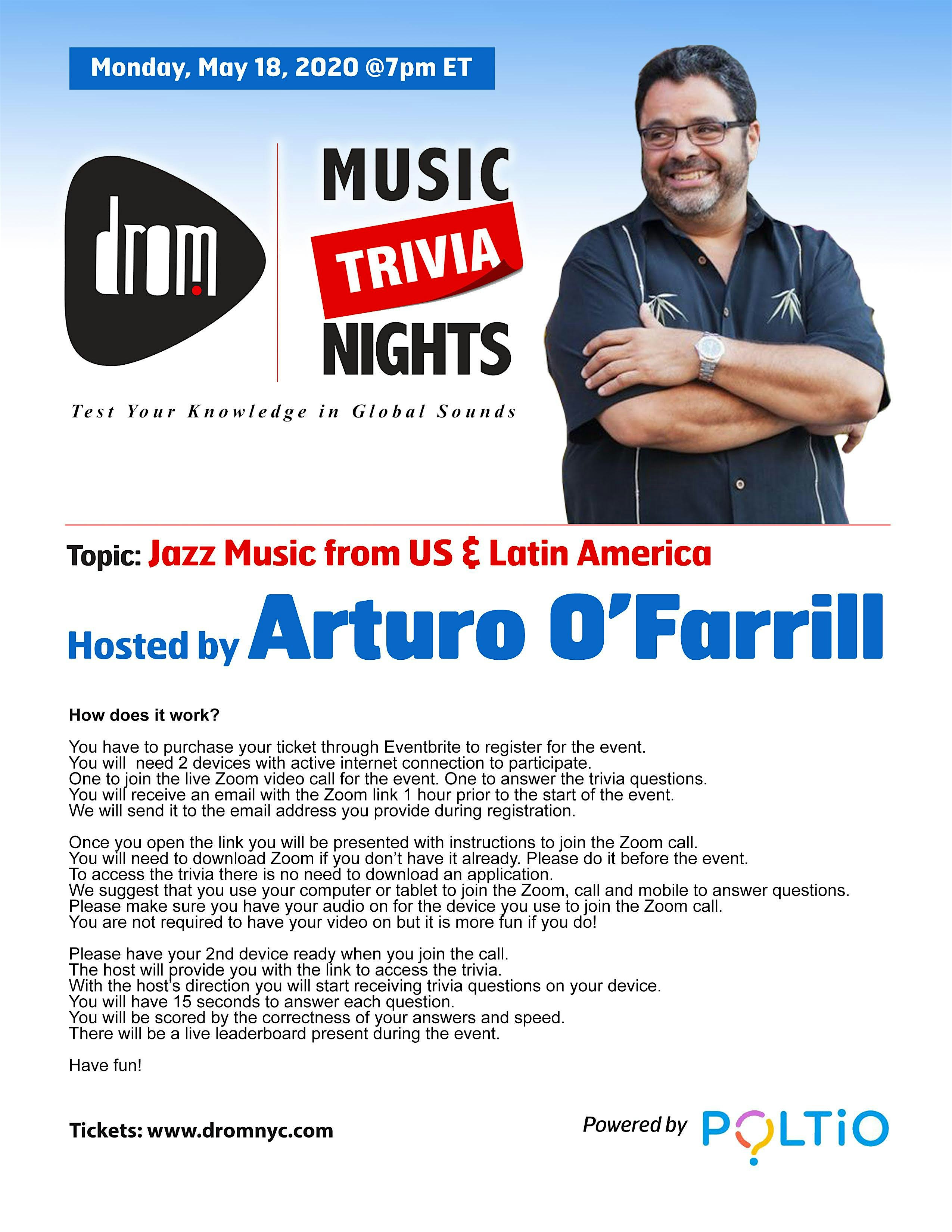 (Online) DROM MUSIC TRIVIA: Jazz From US & Latin America w Arturo O'Farrill