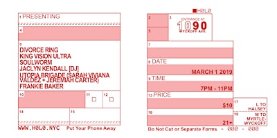 LINE-UP: DIVORCE RING, KING VISION ULTRA, SOULWORM, JACLYN KENDALL, UTOPIA BRIGADE [SARAH VIVIANA VALDEZ + JEREMIAH CARTER], FRANKIE BARKER