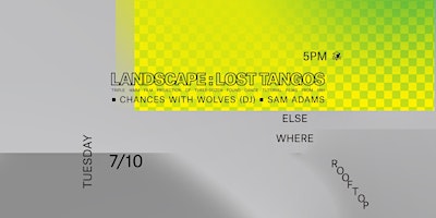 Landscape Presents: LOST TANGOS w/└ Chances With Wolves (DJ set)└└ Sam Adams LOST TANGOS is a triple 16mm film projection of three-dozen found dance tutorial films from 1961. Each reel features a solo dancer in attire, cavorting a sequence on a backyard patio before a lush landscape. Visual affinities of focused body gestures, and outright oddities—an unexpected flash to a poolside, a charge into a screen door, a jump rope session— unfold over the three separate projections to dissonant intertwining of contorted tunes and audial commands. LOST TANGOS is an ode to modes of information sharing far predating YouTube instructional videos, an unearthing of a vernacular treasure trove, and as an ensemble, a discordant dance itself.#landscapeartsDoors: 5PMHappy hour: 5PM – 7PM ($4 beers, $4 wells)Performances: 5:30PM - 9PMRoof closes: 10PM