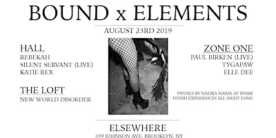 BOUND X Elements w/ Rebekah, Silent Servant (Live), Katie Rex, Paul Birken (Live), Tygapaw, Elle Dee & New World Disorder @ Elsewhere