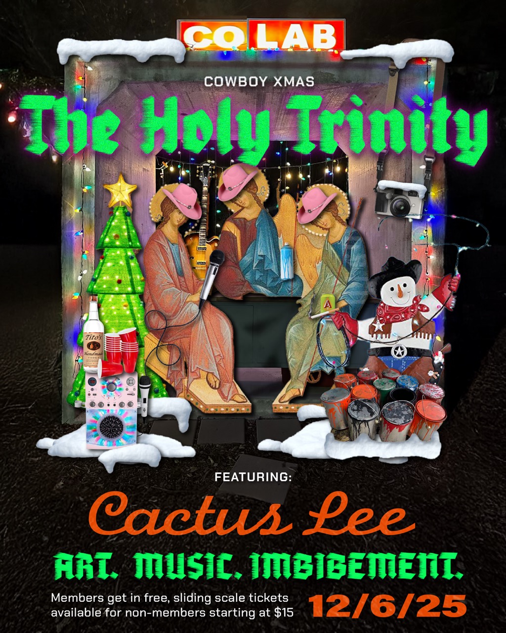On December 6th, we are ringing in the holidays with an anti-soiree, our third annual Cowboy Christmas-themed fundraiser and membership drive, featuring the Holy Trinity of ART, MUSIC, and IMBIBEMENT.