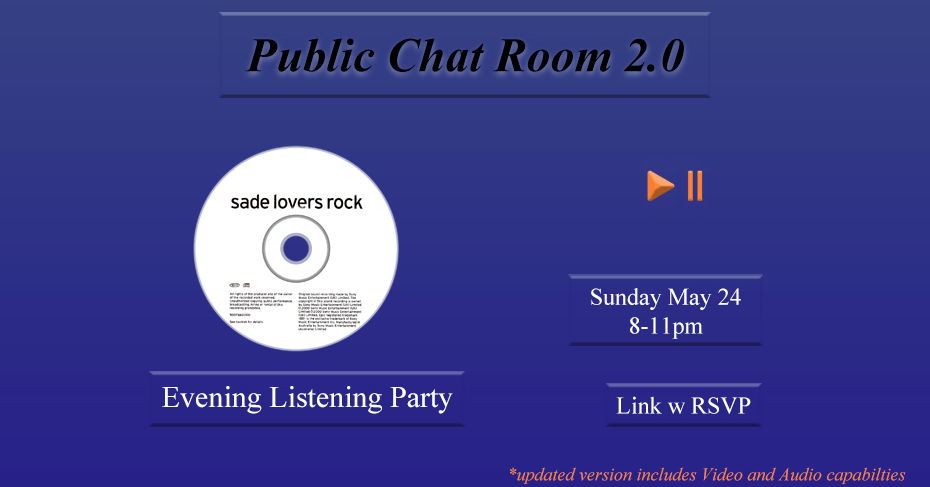 As part of our Public Chat Room series, the main focus of this event is to appreciate music by listening to Lovers Rock––the *fourth* album by Soul/Smooth Jazz group Sade. It is a chance for people to enjoy some music with each other without judgement or expectations! We will listen and discuss together in a Zoom meeting.