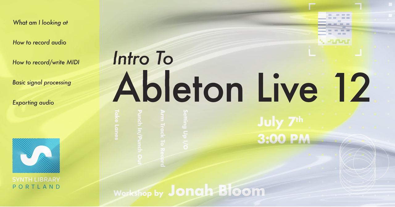Join us for our Intro to Ableton Live 12 workshop. This is a beginner friendly workshop for all those looking to delve into this popular DAW.