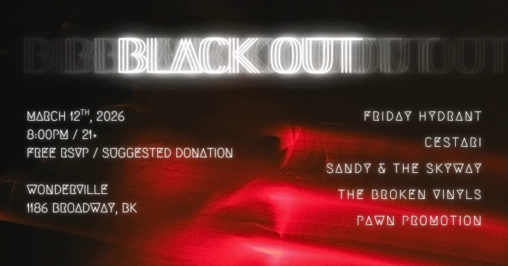 BLACK OUT is a multi-act event curated by rising independent artist Cestari. Bringing together five rising artists in nyc for a night of intimate and volatile performances. Featuring: