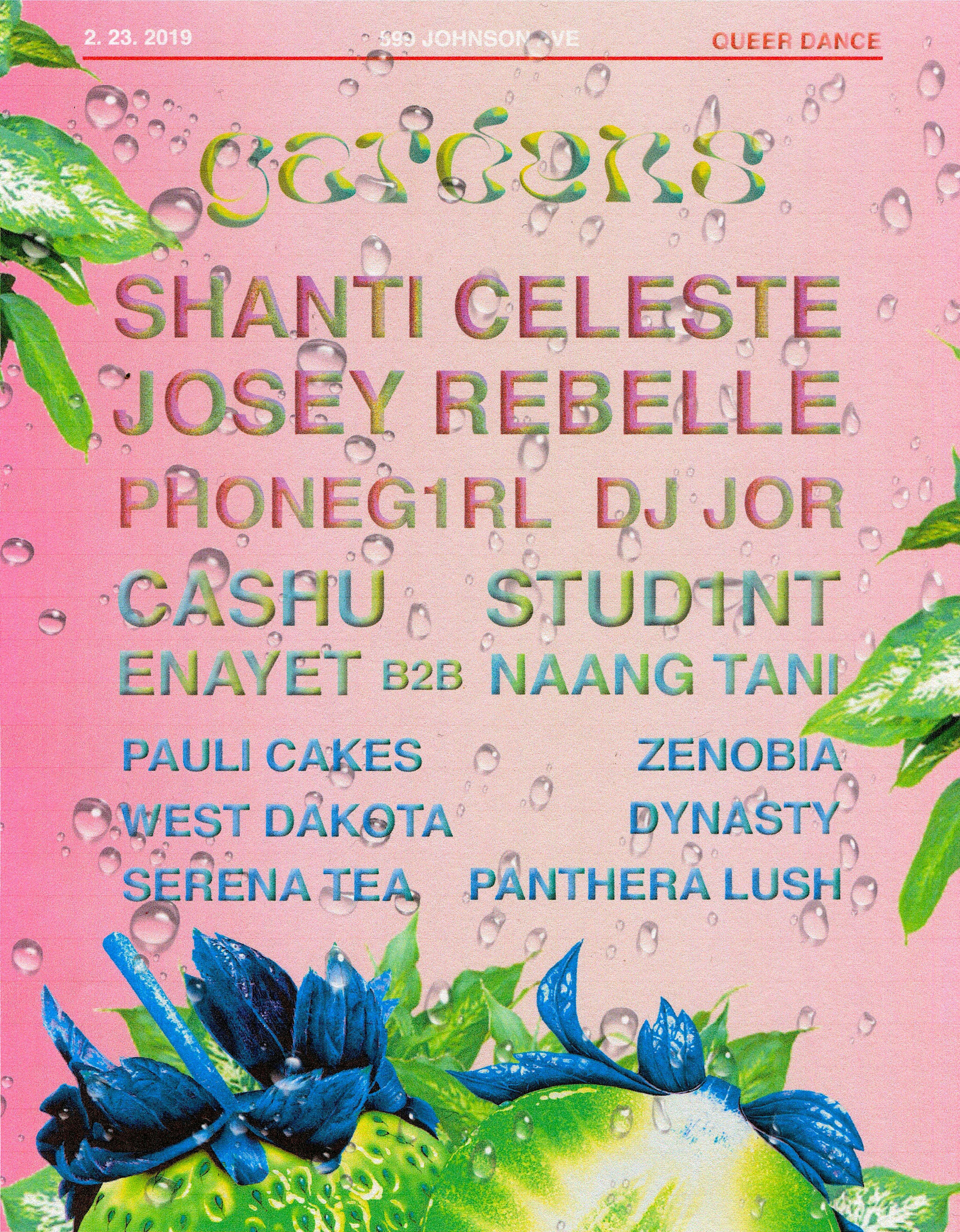 11PM - 5AMHall:Josey RebelleShanti CelestePhoneg1rl + DJ JorZone One:CashuStud1ntEnayet B2B Naang Tani