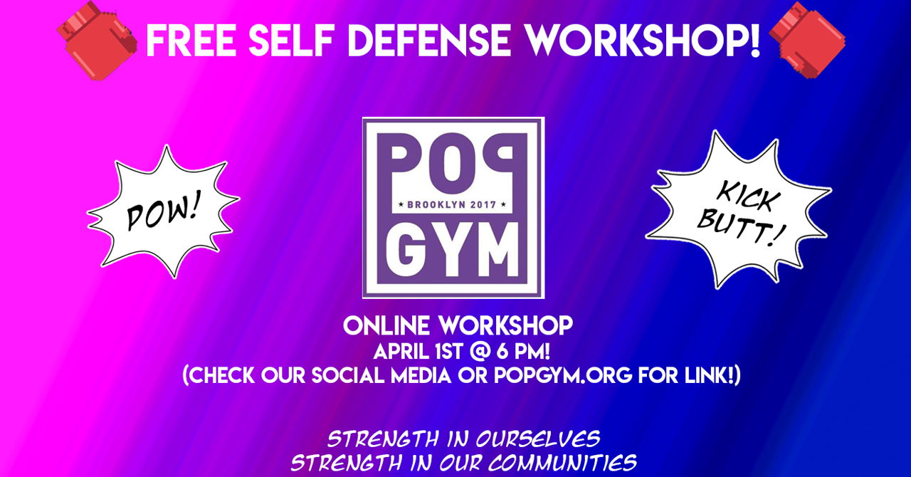 TLDR: This is an ONLINE workshop! Free to attend (donations welcome!), you can get the Zoom link by RSVPing at the addresses below, or email us at info@popgym.org! All money raised will go to reimburse instructors at future workshops!