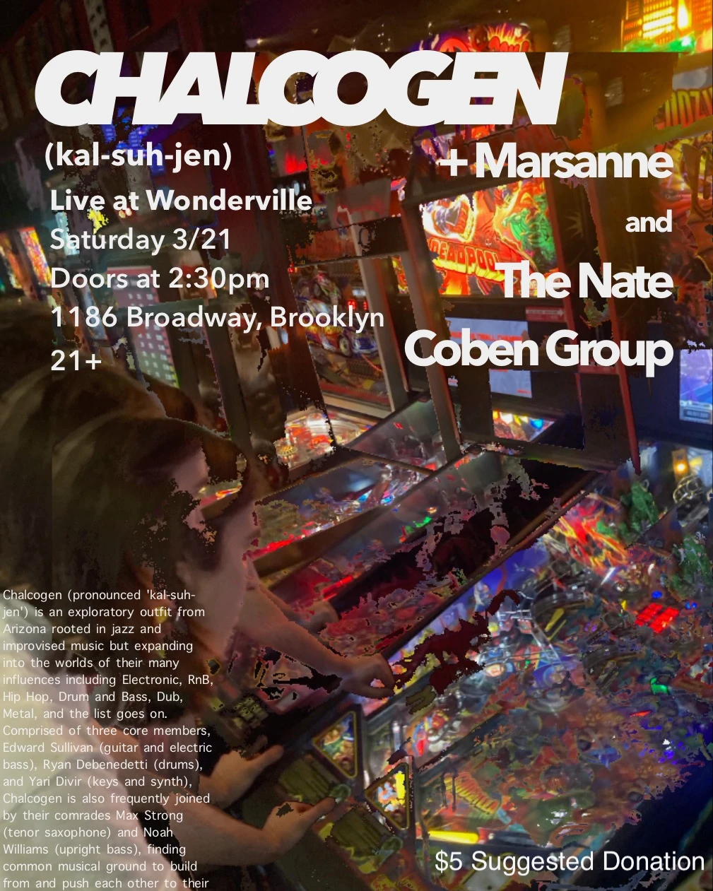 Live beats and Jazz Fusion with Chalcogen. @Marsanne @Chalcogentheband @Neight