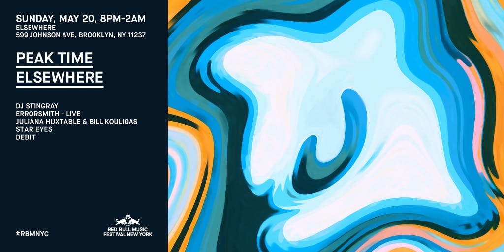 Red Bull Radio's Peak Time gets a peak-time afterparty.DJ StingrayErrorsmith (Live)Juliana HuxtableStar EyesDebitMay 208PM-2AM#RBMNYCFollowing our special broadcast of Peak Time – Red Bull Radio's daily new music show with Vivian Host – in front of a live audience at Brooklyn's Rose Gold, join us for this afterparty down the street at Elsewhere. This intimate evening will feature Peak Time guests, including Berlin's Errorsmith (who performs live in New York for the first time in 15 years) and Detroit's driving force DJ Stingray, plus sets from NYC-based DJ and nightlife disruptor Juliana Huxtable, NAAFI-affiliated producer Debit and Peak Time's Host, who reflects on warehouse raves and the hardcore continuum under her Star Eyes alias. Expect special guests throughout the evening and a steady diet of left-of-center techno, electro, breakbeat rave and other provocative club music.