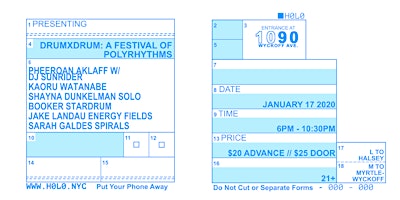 FULL LINE-UP:SARAH GALDES SPIRALSJAKE LANDAU ENERGY FIELDSBOOKER STARDRUMSHAYNA DUNKELMANKAORU WATANABEPHEEROAN AKLAFF W/ DJ SUNRIDER