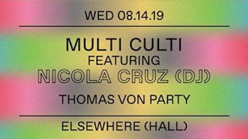 NICOLA CRUZ (DJ SET), Thomas Von Party (Multi Culti Party) @ Elsewhere (Hall)