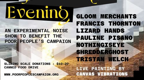 Benefit for Poor People's Campaign: Gloom Merchants / Francis Thornton / Lizard Hands / Pauline Pisano / Nothingiseye / Shredderghost / Tristan Welch / live painting by Canvas Vibrations