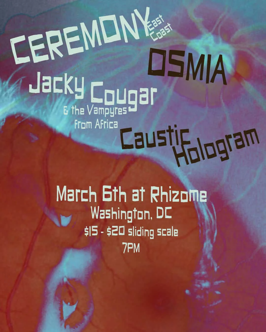 Osmia started as a recording project in Oregon, currently based in Maine. Sometimes fuzz pedals set to ten and sometimes spacey reverberations. Post rock / post punk genre derivations. Loud, quiet rock and roll for a folk soaked sea coast. This is their second time in DC..