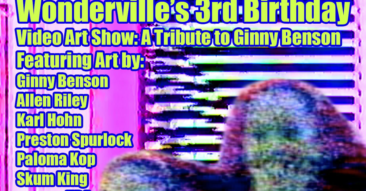 Come celebrate Wonderville's third birthday on Sunday May 1st! This year we'd like to pay tribute to video artist Ginny Benson, one of our longtime friends who has recently passed. We'll be debuting a new video art piece of hers that will live permanently in the bar at Wonderville, as well as showcase other work by local video artists.