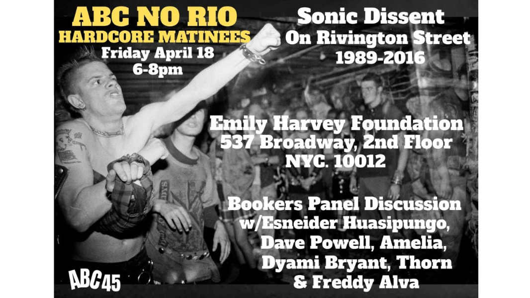 As part of the ABC No Rio 45 Years exhibition, former No Rio matinee booker, Freddy Alva (Wardance Records, author of Urban Styles), will give a sneak preview of his upcoming book and lead a panel discussion with former No Rio matinee bookers and current members of the ABC No Rio Punk and Hardcore collective.