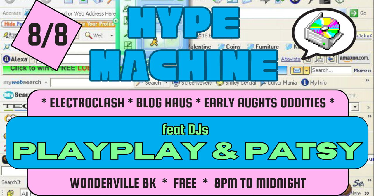 Fire up your ancient hard drive for a night of bloghouse edits, electroclash, and other early aught's oddities, all while playing Wonderville's hypest collection of arcade machines. PlayPlay & Patsy dive deep into your desktop nostalgia with bangers from the likes of Peaches, Cut Copy, CSS, Miss Kittin, Fischerspooner, Gossip, Simian and all the rest... along with a treasure trove of blog track edits you never knew you missed. You'll never be alone again.