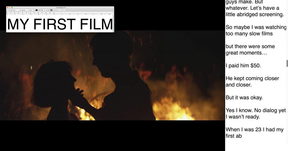 The expanded cinema performance MY FIRST FILM began its gestation at Spectacle in June 2018 as (abandoned). It’s since played numerous film festivals, embarked on a world tour, and been called one of “62 of the Best Documentaries of All Time” by Richard Brody in The New Yorker. Following on our 2020 Spectacle in Exile zoom event (abandoned) 2, we once again welcome back filmmaker Zia Anger for a two-night run of My First Film.