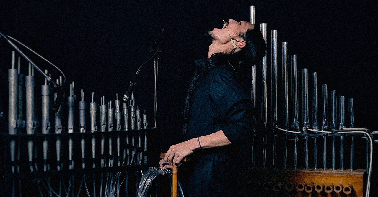 Yosuke Fujita, also known as Fuji||||||||||ta, is a sound artist, organist and composer based in Japan. Fujita’s artistic practice centers on the exploration, manipulation and presentation of unheard sounds and noises commonly found within nature, including the use of air, water and even the echolocation of bats. In 2009 Fujita hand fabricated a Pipe Organ that has only 11 pipes and no keyboard. Fujita conceived and built it using his imagination, without any prior or specialized knowledge. Designed to create a landscape rather than function as a musical instrument, he took the idea from the Japanese “gagaku”. The air pump (called “fuigo”) which is kept moving by the left hand when playing and is based on associations with an ancient blacksmith. This is a unique instrument that Fujita had to learn to play. Recently, he has added synthesized water sounds from multiple aquariums alongside his pipe organ and his voice.