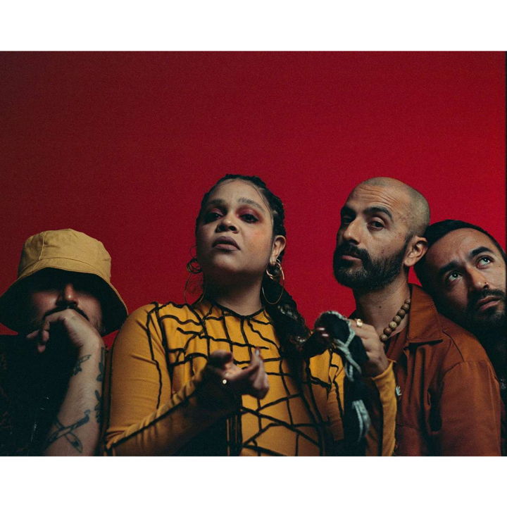 Chimbita formed in 2016 as a loose combination of friends and bandmates, many of whom had played together in other groups, all of whom were products of the Colombian diaspora who ended up as first generation New Yorkers making their way in the city’s fertile music scene. Through a year-long residency at Brooklyn’s iconic venue Barbès, an incubator for countless musical talents, the group’s sound evolved, mutated, and gradually came into focus. What had once been a casual jam session now clearly showed signs of real synergy, the kind of thing that demanded a dedicated approach to reveal where it would go. El Corredor Del Jaguar, an EP recorded in the infamous hangout known as El Bunker, was the result, and it showed the roots of all that would come ahead: the crackling rhythms of Dilemastronauta, Niño Lento’s razor sharp guitar, Prince of Queen’s cosmic synths, and above it all the mesmerizing vocals and propulsive guacharaca of Carolina Oliveros. 2017’s full length Abya Yala followed, with successive LPs dropping bi-annually after that (2019’s Ahomale and 2021’s Ire). Throughout it all, the band has toured relentlessly, developing a live show that is impossible to ignore. Whether it is the individual musicianship of the band, an evolving and intricate interplay of instrumentation that manages to be both tight and laser-focused as well as expansive and psychedelic, often in the space of a single song — or the shamanic intensity of Oliveros’s performance, always theatrical and fierce to the utmost, Combo Chimbita is forging their own unique musical path, one that is well worth following.