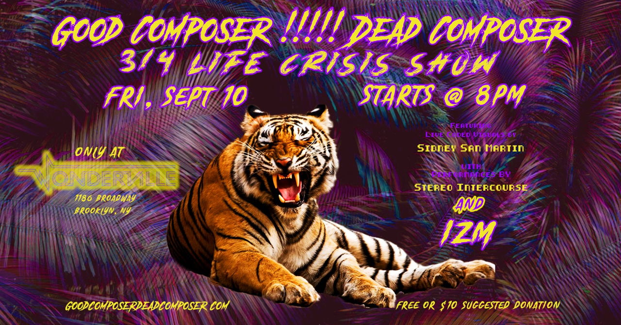 That’s what Josh and Simon did for good composer/dead composer and they’re three-quarters through a year of releases. They’re celebrating with a big ol’ party with live music (the IZM, Noelle Tannen), live coded visuals (Sidney San Martín) and a dance party. Of course music videos will be screened and a rowdy Q&A will serve as the eye of a fantastic hurricane of fun.