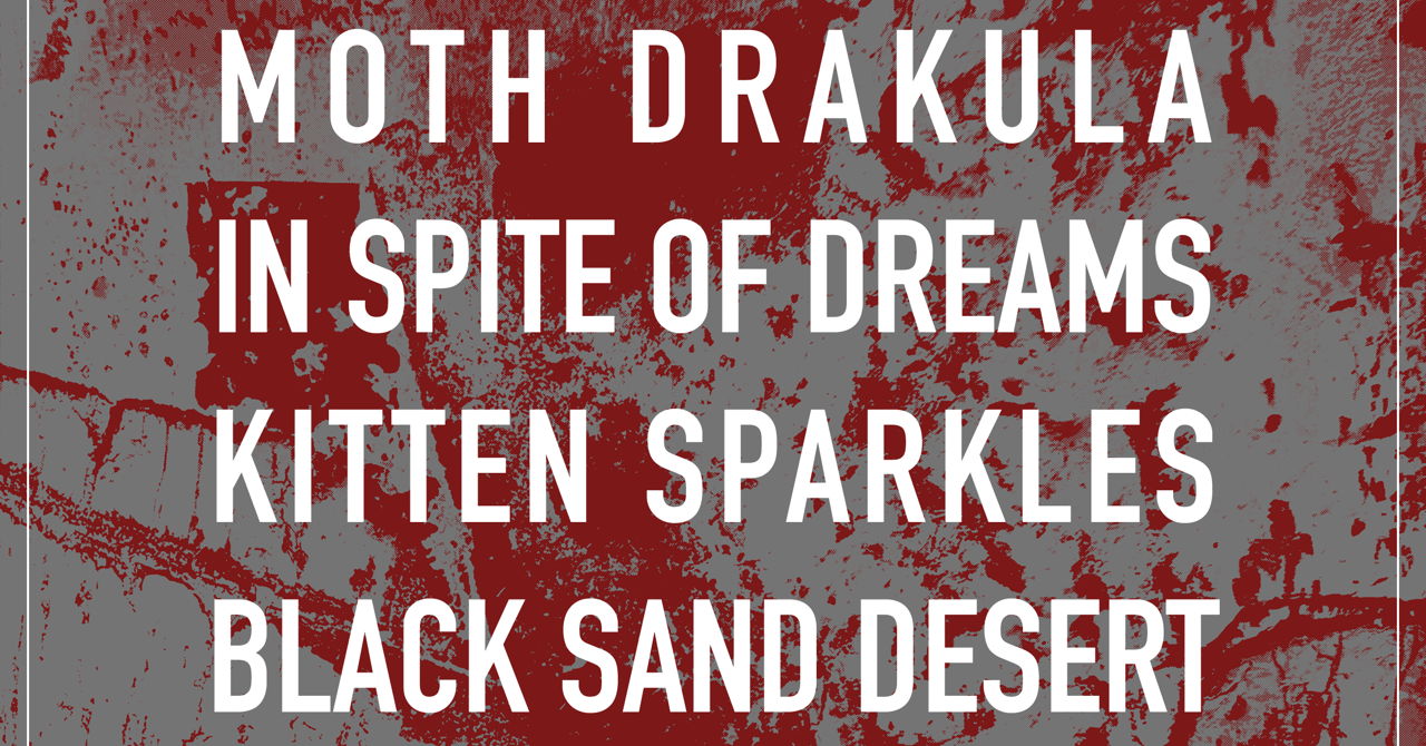 With a glipmse into the past we present a hard-hitting vintage LA noise event to underscore both the first Moth Drakula show in over 15 years, as well as their tour with Gerritt Wittmer's new solo project In Spite of Dreams. Stacked from top to bottom with a classic lineup from those glory days of 2006, featuring only affiliated projects active during that heyday -- Vortal Curb, Circuit Wound, Black Sand Desert, Kitten Sparkles (Don Bolles + Joseph Hammer) and the master of pre/post/interlude ceremonies, DJ Nanny Cantaloupe (Mitchell Brown). Think Il Corral, The Smell, busted gear, mixed bill house shows, South Bay drives, 5 minute sets, overturned tables, noise as punk; everyone gets a chance to swing from the rope.