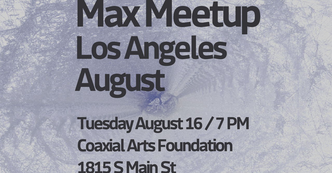 Join the LA Max community at Coaxial Arts Foundation on August 16 at 7 PM. This is the second of a monthly series of meetups focused on the creation of music and multimedia art using the software Max by Cycling ‘74. These events feature talks and performances from people who use Max, plus free time and space to learn, patch, and hang out with others who love computer music and art.