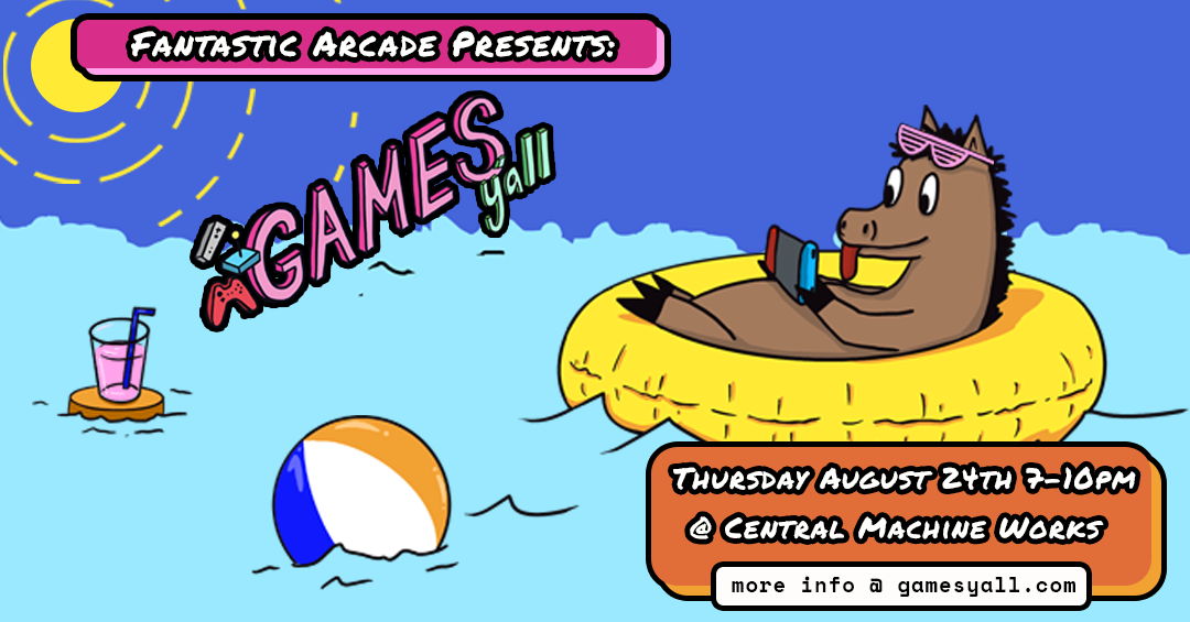 Games Yโall is a monthly meetup presented by Fantastic Arcade for indie devs, digital artists, and games fans. We showcase indie games and digital art projects from our local community and beyond. You can come to our meetups to play games, experience digital art, and connect with the local Austin games community.