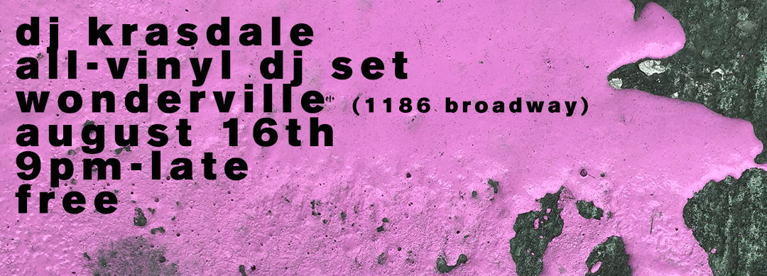 DJ Krasdale (Travis from Grooms/Activity) spins all-vinyl all night. Post-punk, new wave pop, mutant disco, krautrock, electro, and 90s IDM.