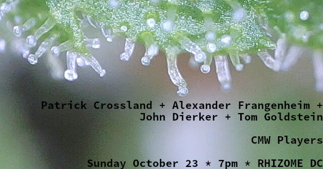 German bassist Alexander Frangenheim and local trombonist Patrick Crossland have worked as a duo for several years as documented on their 2013 CD, Ape Green. This performance will also feature saxophonist John Dierker and percussionist Tom Goldstein. This quartet has never played together, making this a true first encounter.