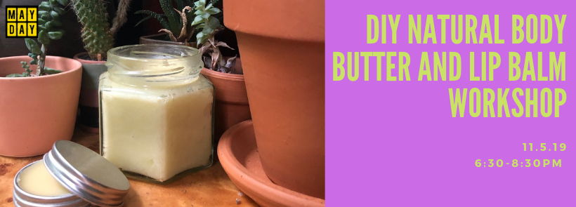 Description: In this class, you’ll get an introduction to making your own body butter and lip balm with all natural ingredients. We’ll go over the basics of ingredients, sourcing, and process for DIY skincare products before making some of your own. You’ll go home with a body butter and lip balm — made by you!