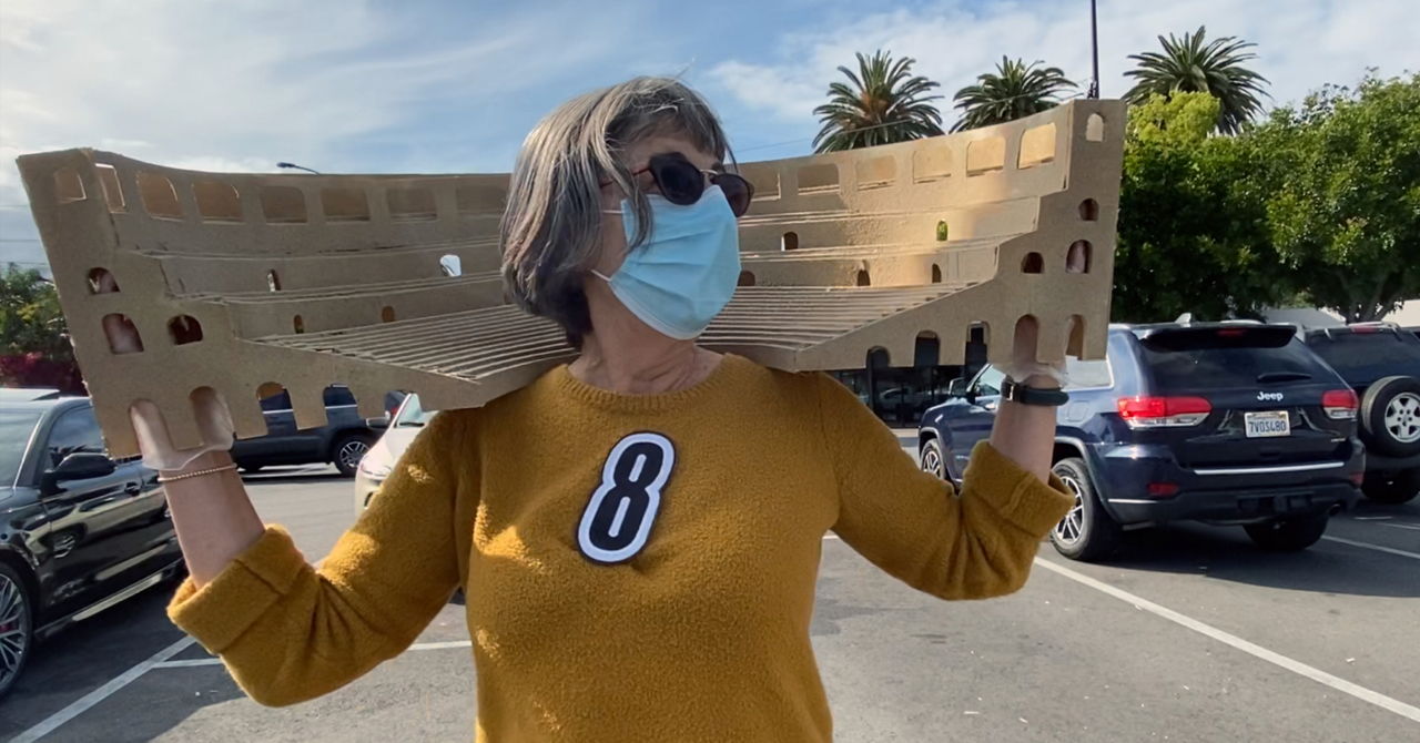 In Act 1, we meet Co-Rona, our protagonist, as she lands disoriented in the new pandemic world, struggling to locate herself. She blindly carries a collar around her shoulders: half of a Roman coliseum – an architecture of the past representing power, competition and spectatorship. As we join her on her journey through space and time, we examine through facilitated reflection how the conflicts of the world between us can simultaneously live within us.