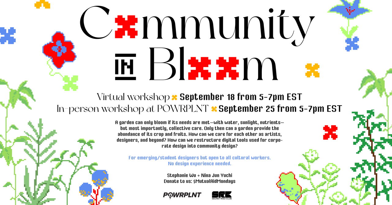 A garden can only bloom if its needs are met—with water, sunlight, nutrients—but most importantly, collective care. Only then can a garden provide the abundance of its crop and fruits. Our workshop critiques the increasingly individualistic art & design culture and to create a space of collective care vital for our growth and healing, not only as designers but as also people.