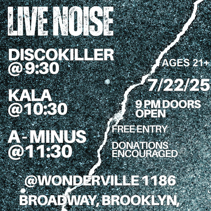 3 experimental noise artists,Kala (NYC) Experimental noise artistA-Minus (NYC) Experimental noise artist Discokiller (Belgium) digital hardcore