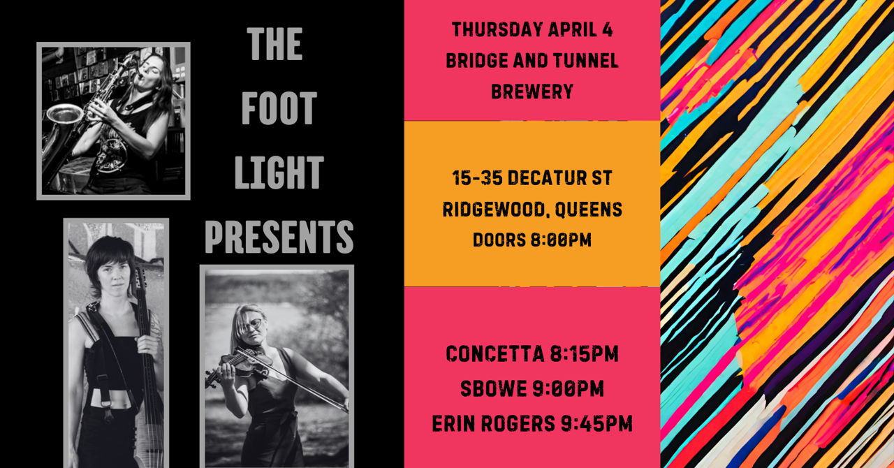 Footlight Presents AT BRIDGE & TUNNEL BREWERY CONCETTA ABBATE | SBOWE | ERIN ROGERS