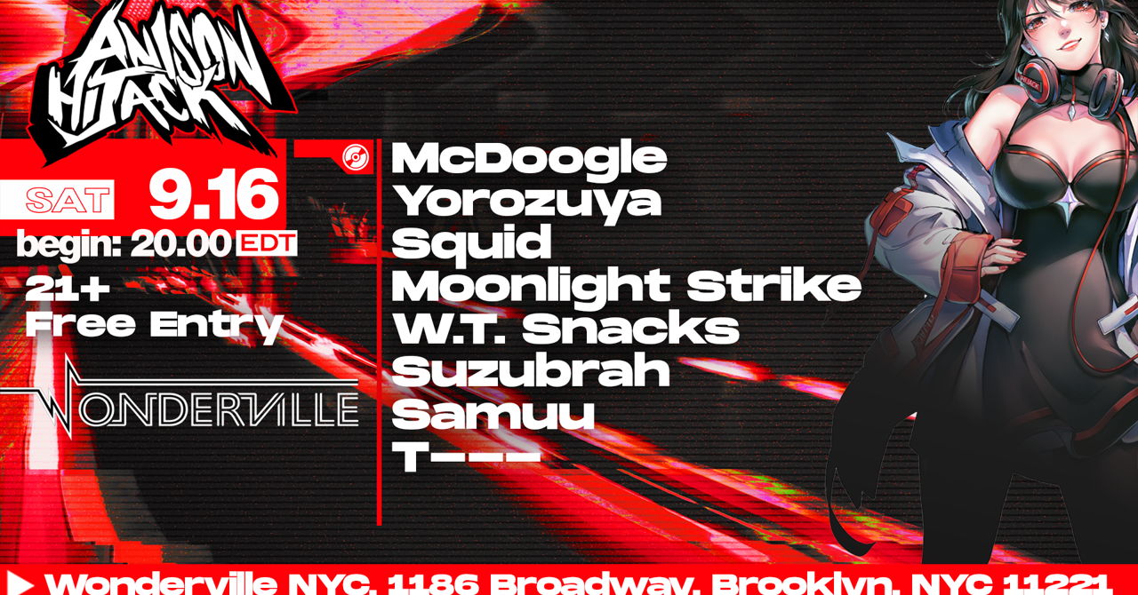 Catch the hottest otaku dance party in NYC! Expect a night of music that'll be sure to please every anime-loving party animal around. We've got anime remixes and originals of future funk, techno, drum n bass, dubstep, and much more! And best of all - it's free entry!