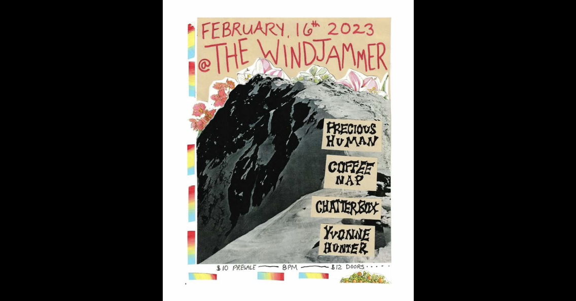 Coffee Nap | Precious Human | Chatterbox | Yvonne Hunterdoors at 8:1521+, proof of vax requiredMasks encouraged$10 adv/$12 doors