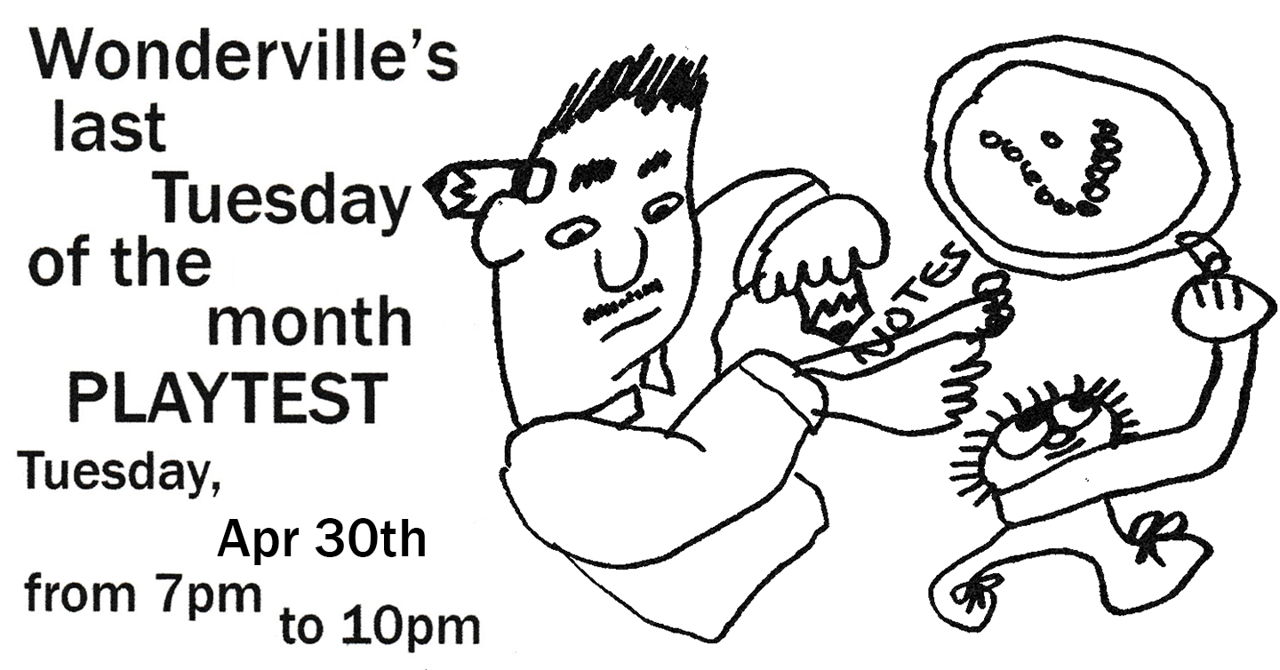 Playtest Night is EVERY LAST Tuesday of EVERY month!
