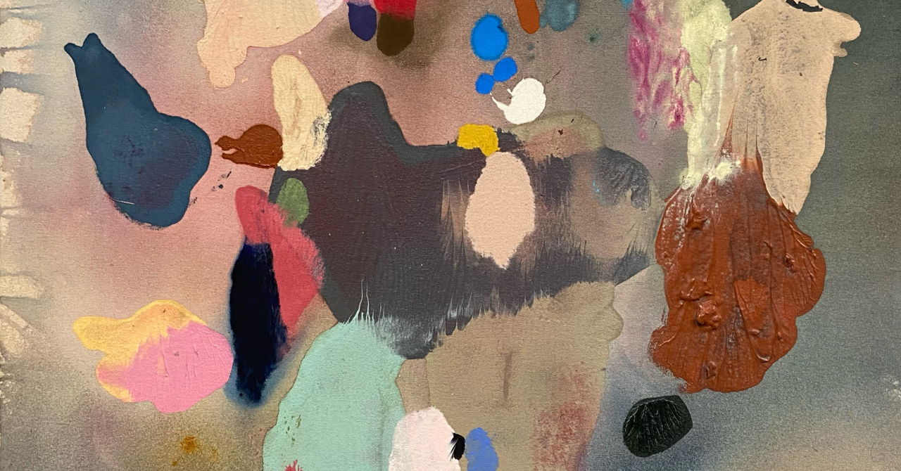 Mood Ring features paintings made between January 2021 and April 2022. These works were inspired by recent immersive experimentation and exploration of paint and material in my studio practice. For years I have favored colorful combinations of house paint, acrylic, and gouache as my primary materials. The addition of pigment dispersions, bleach, inks, and a lot of water to my process allows for greater opportunities of unique interactions of the materials and layering. I naturally dye found fabrics and canvas and pour the paint to incorporate the element of chance. The process is mystical and unpredictable, like a mood ring. The resulting paintings are meditations on color and the human experience.