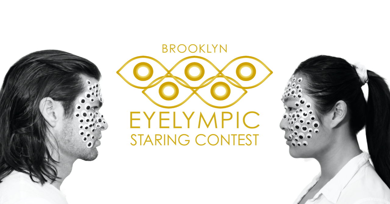 There is no older sport than two people engaged in a trial of unblinking eyes. One fateful day, a caveman locked eyes with another caveman. At that moment there was an unspoken challenge. Neither would relent, not for a second. Only one could be the alpha-starer. Coincidentally this passionate eye contact proved a very desirable trait in a mate, and thus the victor had many offspring. From then on, a genetic culling for the best starers began, establishing a time-honored human competition that transcends cultures and creeds. In that great tradition, this summer we hold the 2021 Brooklyn Eyelympic Staring Contest.