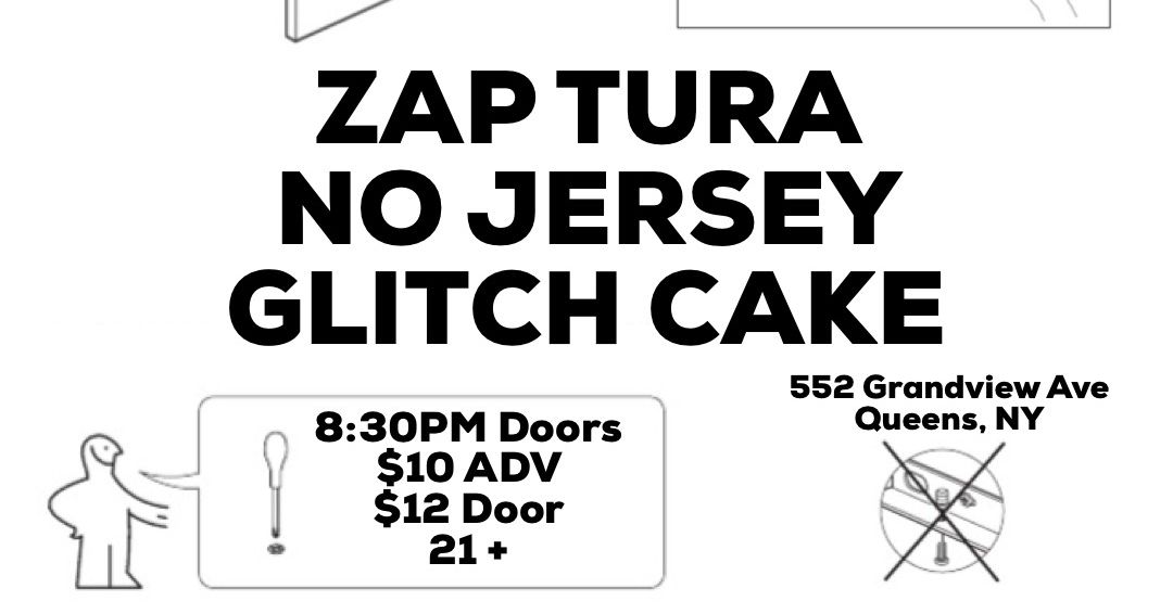 Zap Tura | No Jersey | Glitch Cake Doors at 8:3021+, proof of vax requiredMasks encouraged$10 adv/$12 doors