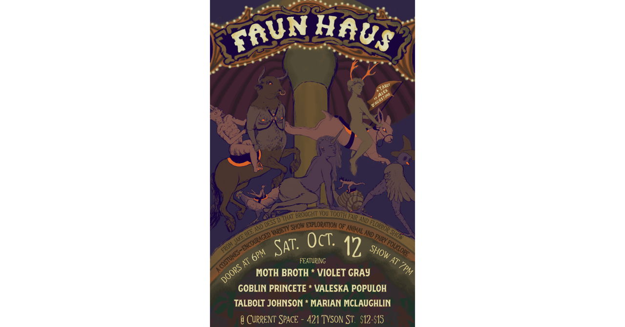 From the creators of Tooth Fair and Florror Show, Faun Haus celebrates the animal, the human, the human-animal hybrid, the punk fae, the satyr, the fairy, the anarchist, the queer--with a cast of Baltimore's finest fey folk. Step into the fairy ring at Current Space, with...