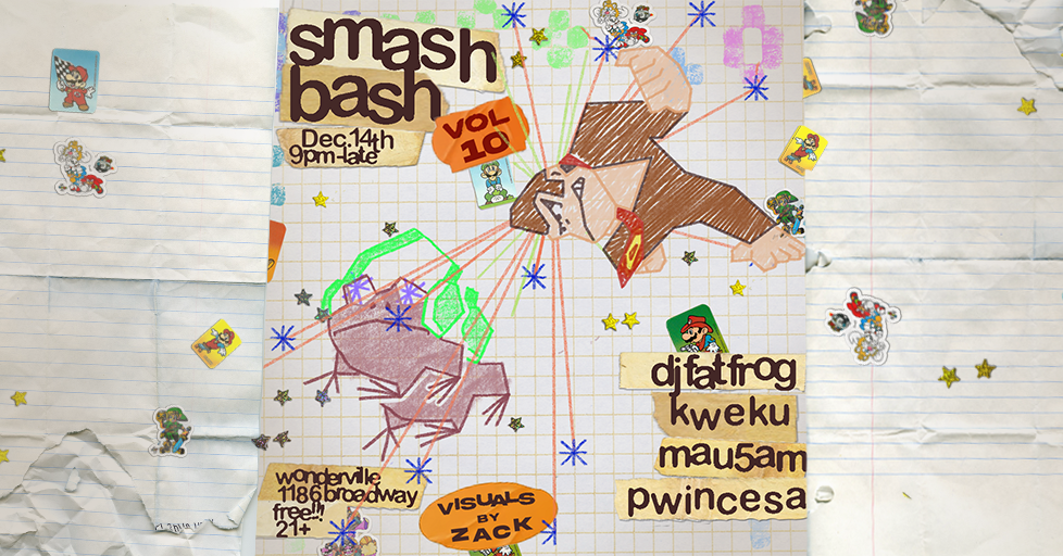 Smash Bash enters the prolific double digit era, as volume 10 arrives hot and ready like an epic sexy pizza. DJs will be spinning jungle, juke, club, and VGM as the soundtrack to a thrilling Super Smash Bros. Ultimate tourney.