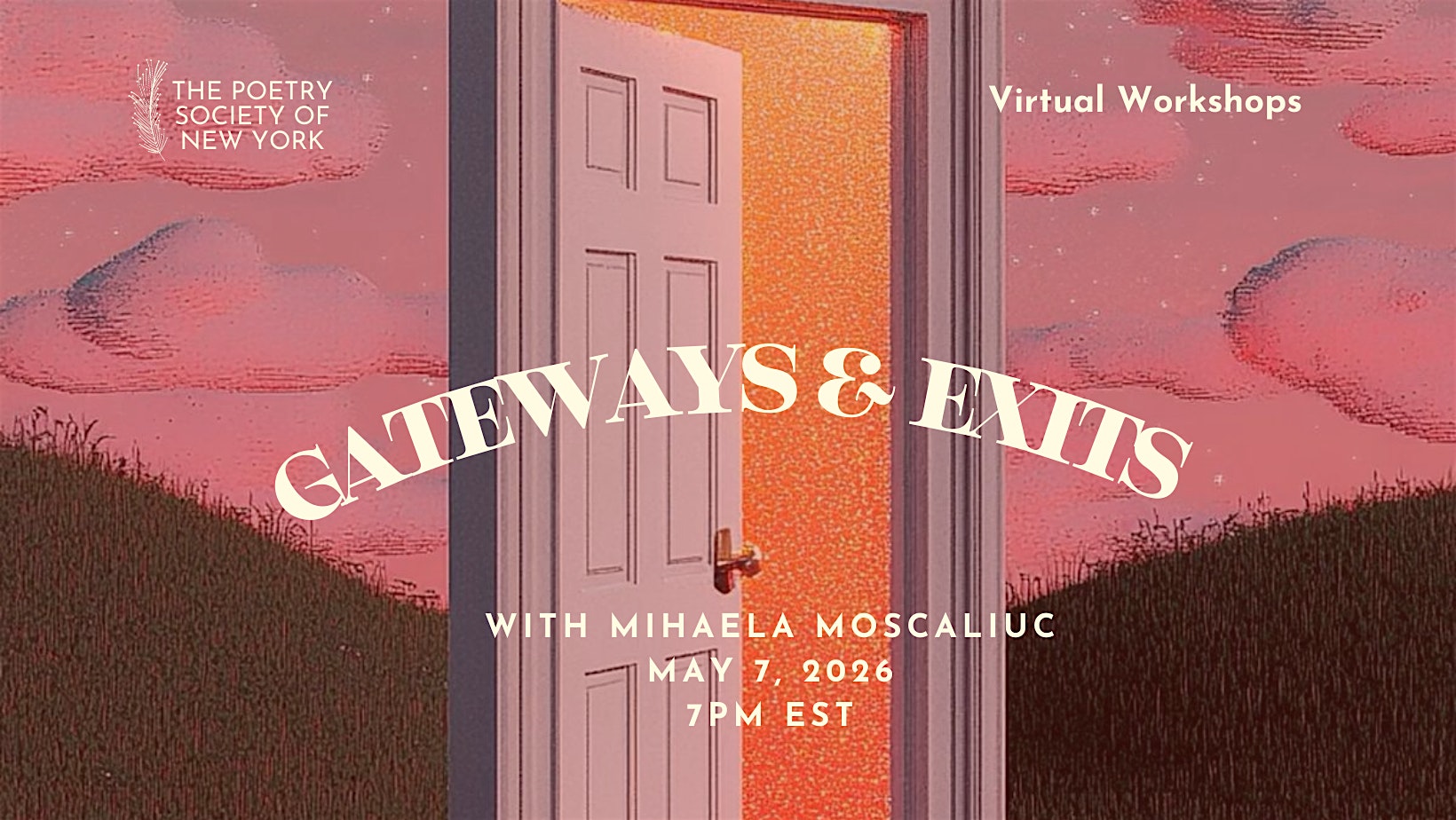 Part of The Poetry Society of New York's Weekly Virtual Workshop Series.