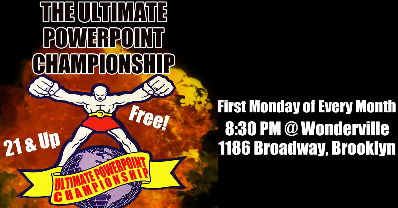 The Ultimate PowerPoint Championship is a blind presentation competition where pairs of comics face off presenting a PowerPoint they have never seen before! This time with a twist, a tournament of champions to crown the ultimate PowerPoint champion!