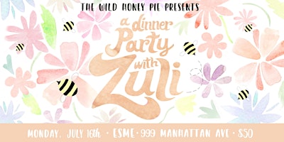 It is summertime in Brooklyn, which means it’s time to soak up the sun and scope out some exciting outdoor eats. Join us for an evening of delicious twists on new American comfort food with a side of infectious live indie pop tunes. Hailing from Long Island, the lush, textured sounds of New York artist Zuli tie seamlessly in with the authentically local vibe and inviting atmosphere of Esme. Come kick it in the backyard, sip on complimentary beer and sink your teeth into some psychedelic instrumentation and catchy melodies you will find yourself humming long after your food baby subsides. Click here to check out our favorite song by Zuli and see why they are sure to electrify any crowd of music lovers and foodies alike. The Wild Honey Pie dinner parties are for those 21 and up only.