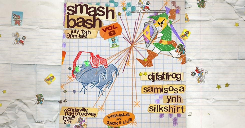 Smash Bash returns for a fiery sixth installment >:) featuring a ripping lineup of DJs spinning jungle, juke, VGM, etc. all night long as the backdrop to an intense bracket of smashers vying for the top spot in a Super Smash Bros. Ultimate tourney.