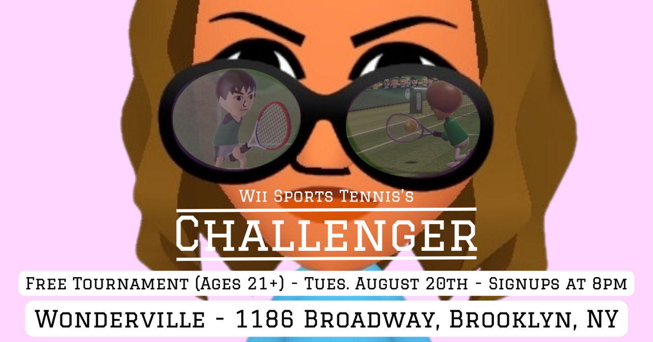Release some tension and show off your serve in this FREE Wii Sports Tennis tournament! Sweat under the judgmental stare of hosts episodeivy & xfunndippx, all to a pulse-pounding techno soundtrack! Sign-ups start at 8pm, but the night will go on as long as it has to!